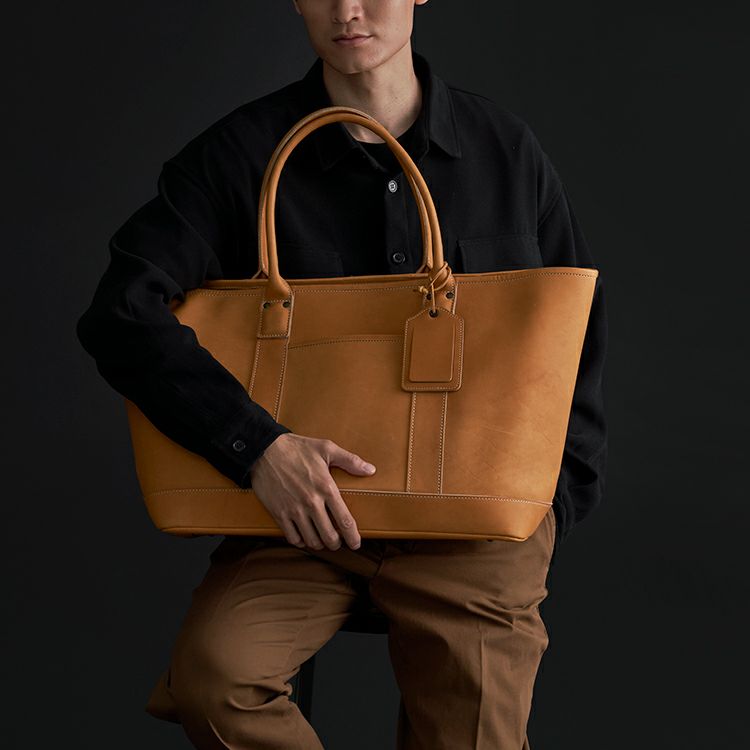 プロ野球選手の野球グローブにも使われる最高級グラブレザーを贅沢に使用し、グラブ作りの技法を落とし込んだ、トライオンのクラフトマンシップが光るビッグトート。