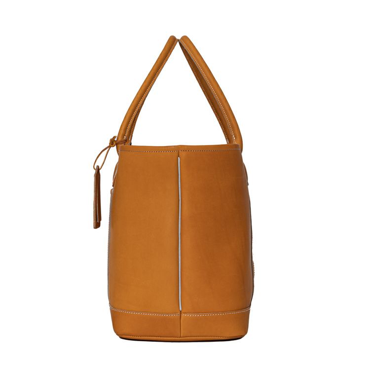 グラブの指部分に用いられる「ハミダシ」を、サイドのマチに応用。グローブでハミダシをつけることで強度が増し、指部分を支える背骨のような役割に。バッグのサイドにハミダシをつけることでピンと立ち上がり、型崩れしにくい丈夫な作りに。