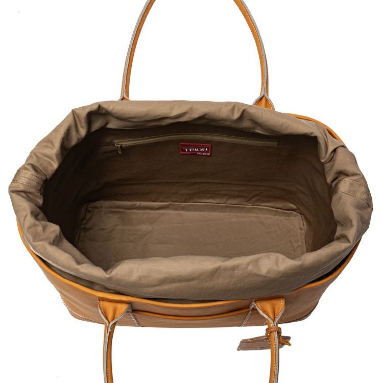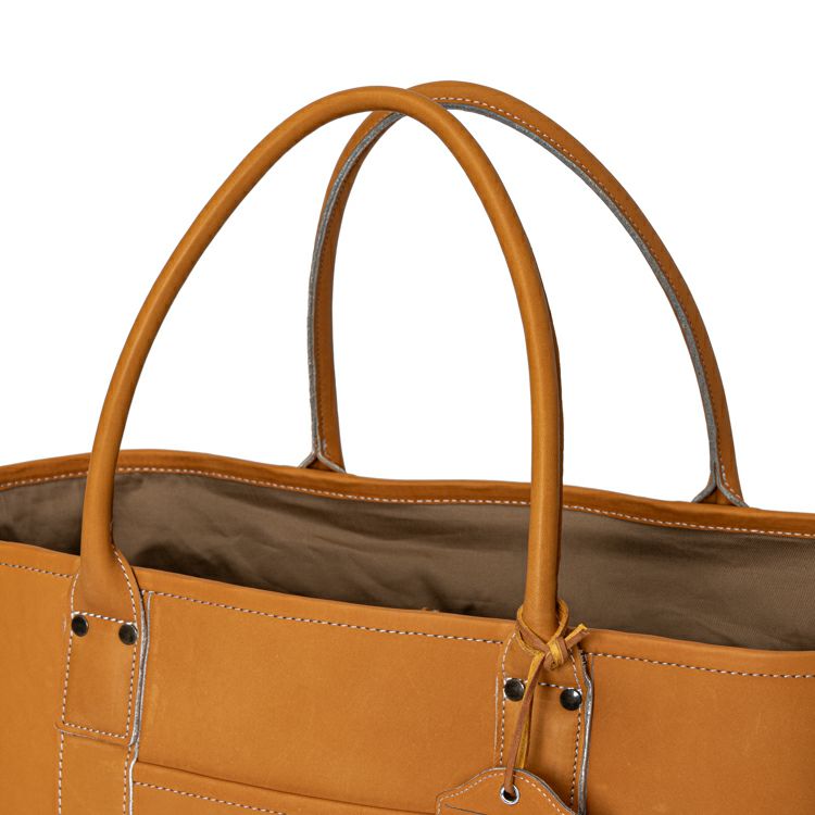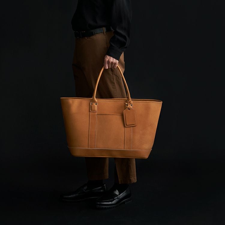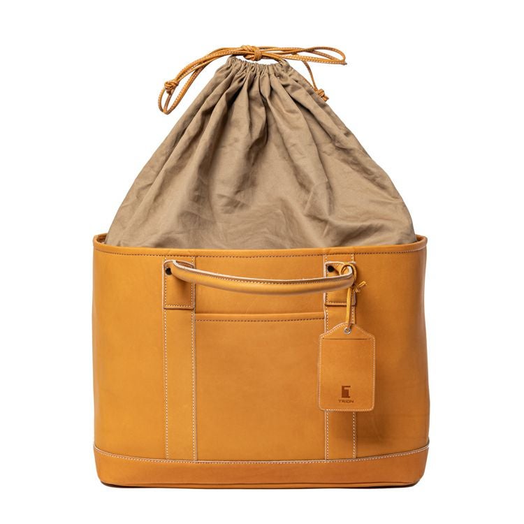 プロ野球選手の野球グローブにも使われる最高級グラブレザーを贅沢に使用し、グラブ作りの技法を落とし込んだ、トライオンのクラフトマンシップが光るビッグトート。