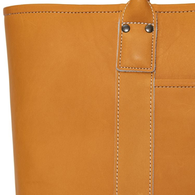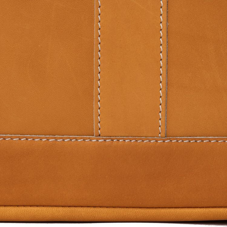 グラブの指部分に用いられる「ハミダシ」を、サイドのマチに応用。グローブでハミダシをつけることで強度が増し、指部分を支える背骨のような役割に。バッグのサイドにハミダシをつけることでピンと立ち上がり、型崩れしにくい丈夫な作りに。