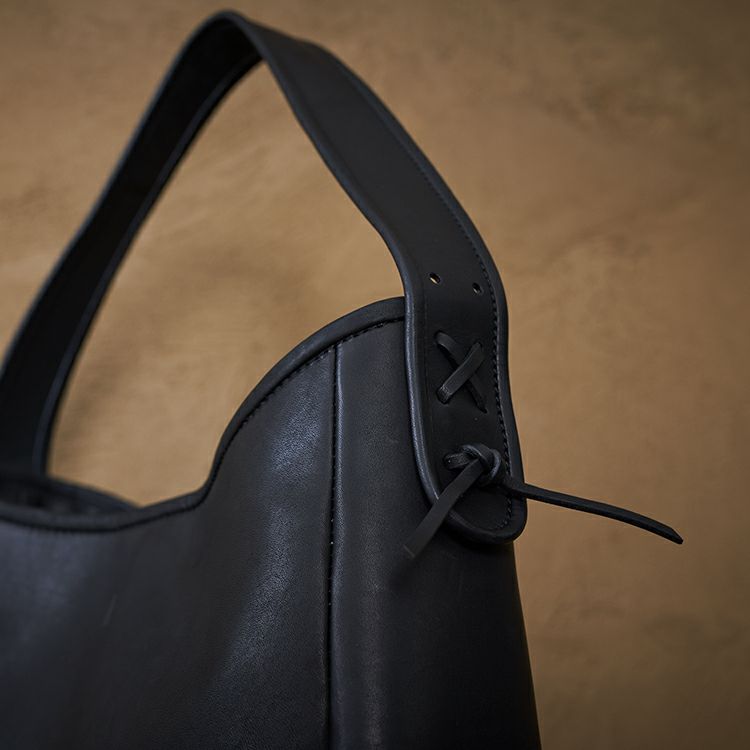 プロ野球選手の野球グローブにも使われる最高級グラブレザーを贅沢に使用し、グラブ作りの技法を随所に落とし込んだ、トライオンのクラフトマンシップが光るワンショルダートート。