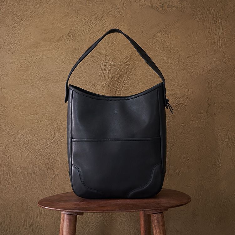 プロ野球選手の野球グローブにも使われる最高級グラブレザーを贅沢に使用し、グラブ作りの技法を随所に落とし込んだ、トライオンのクラフトマンシップが光るワンショルダートート。