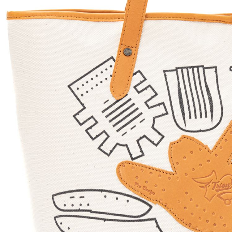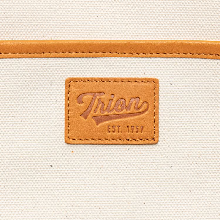 本体には厚手で丈夫なキャンバス素材を使用。ハンドルや開口部のパイピング、一部のディテールには、TRIONが誇るグラブレザーを贅沢に使用しています。