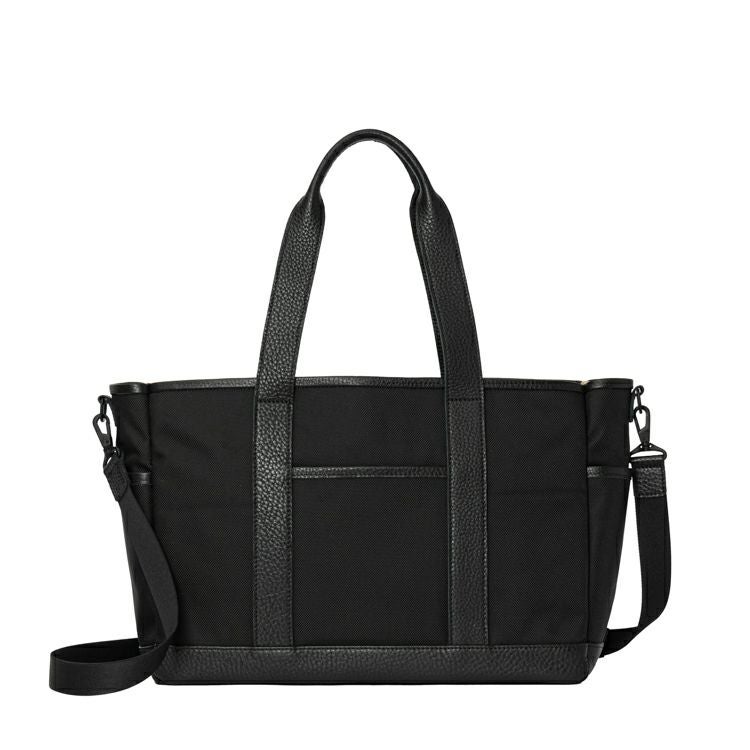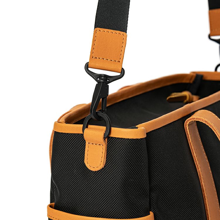 まずこだわったのが、仕事でも使える見た目。球場で足元に置いた時に足が当たっても汚れにくい、高強度で撥水加工を施したコーデュラ®のバリスティックナイロンを使用。アクセントやハンドルにはグラブレザーを使用し、カジュアルだけではない見た目に。シボ革を使用しシックにも持てるBlackと、グラブレザーらしいTanを使った2色展開です。