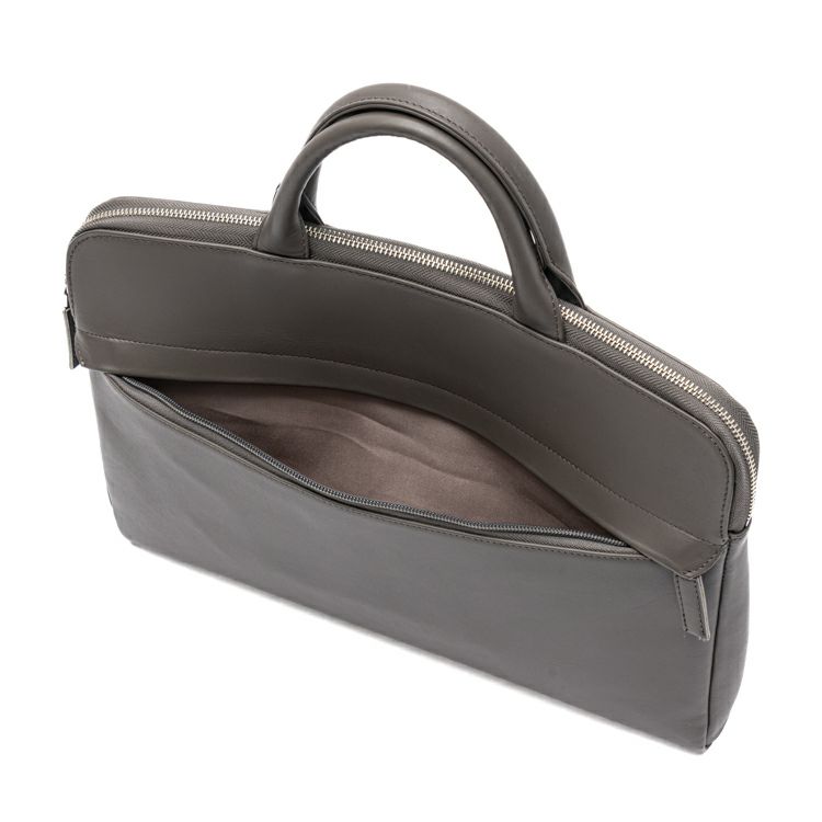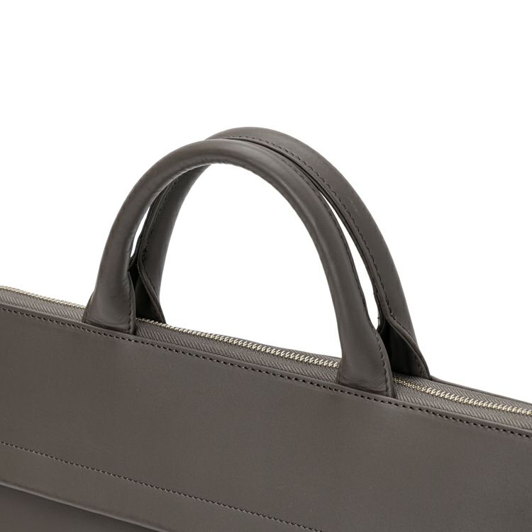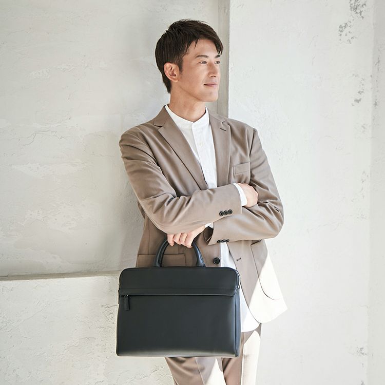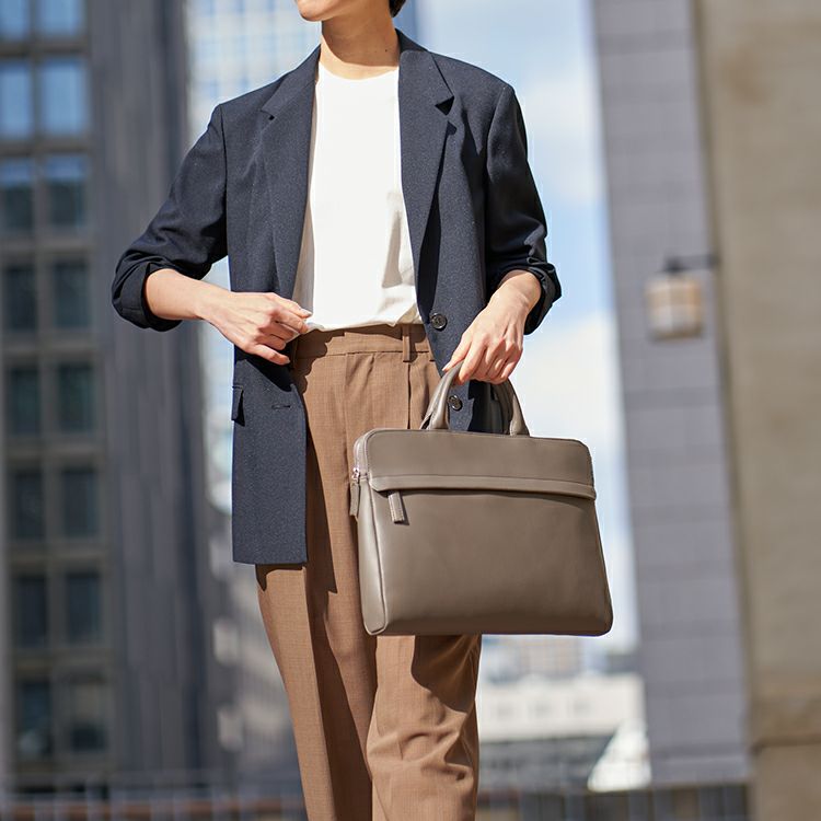 コンパクトでスッキリとしたフォルムに、必要十分な収納力を備えた薄マチブリーフケース。A4サイズや13インチのノートPCが無理なく収まり、日常のビジネスシーンにちょうどいいサイズ感です。