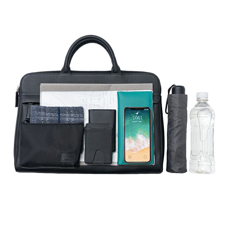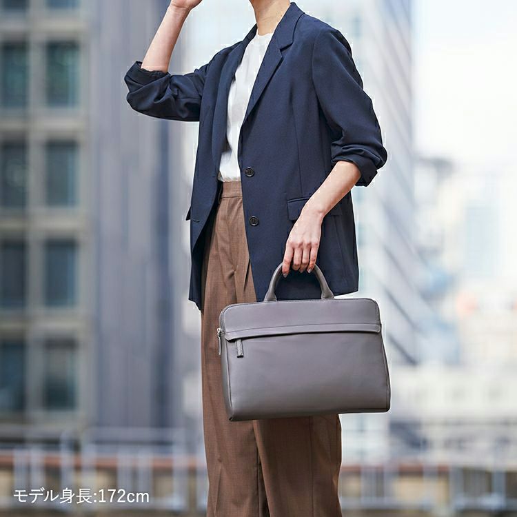 13インチPCやA4書類、長財布やスマートフォン、ハンカチ、折りたたみ傘、500mlペットボトルなど、ビジネスシーンで欠かせないアイテムをすっきりと収納可能。整理しやすい内装設計で、必要なものにすぐ手が届く使い心地のよさも魅力です。