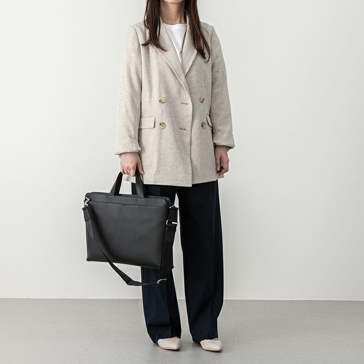 5cmのマチ幅を持たせたことで、13インチPCなどデバイス、A4書類、小物類までゆとりをもって収納可能に。さらに取り外し可能なショルダーベルト付きの2WAY仕様で、シーンやスタイルに合わせた持ち方が選べます。スマートな見た目はそのままに、日常使いの快適さをしっかりと備えたモデルです。