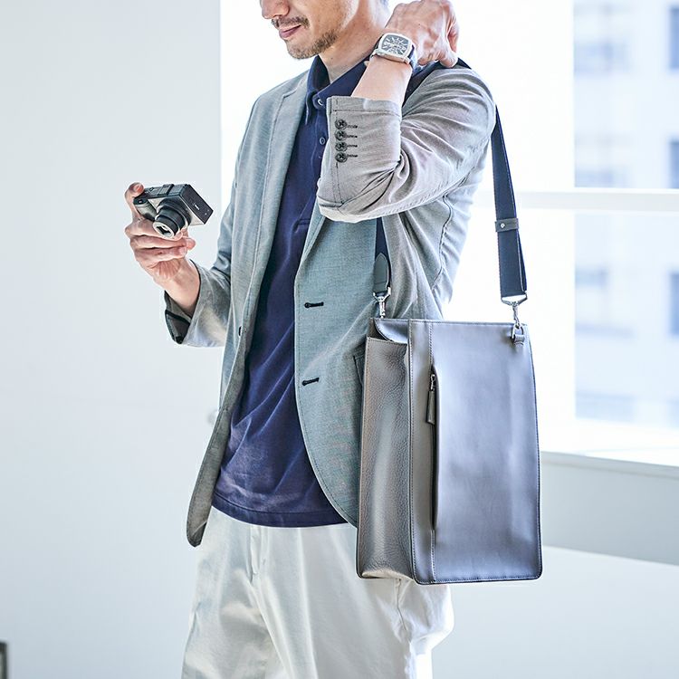 納富さんが考えたイメージは「仕事道具をワンパッケージで持ち歩ける」バッグであること。A4書類が縦にジャストで入り、クッション材付きのポケットでタブレットも安心して持ち運べます。