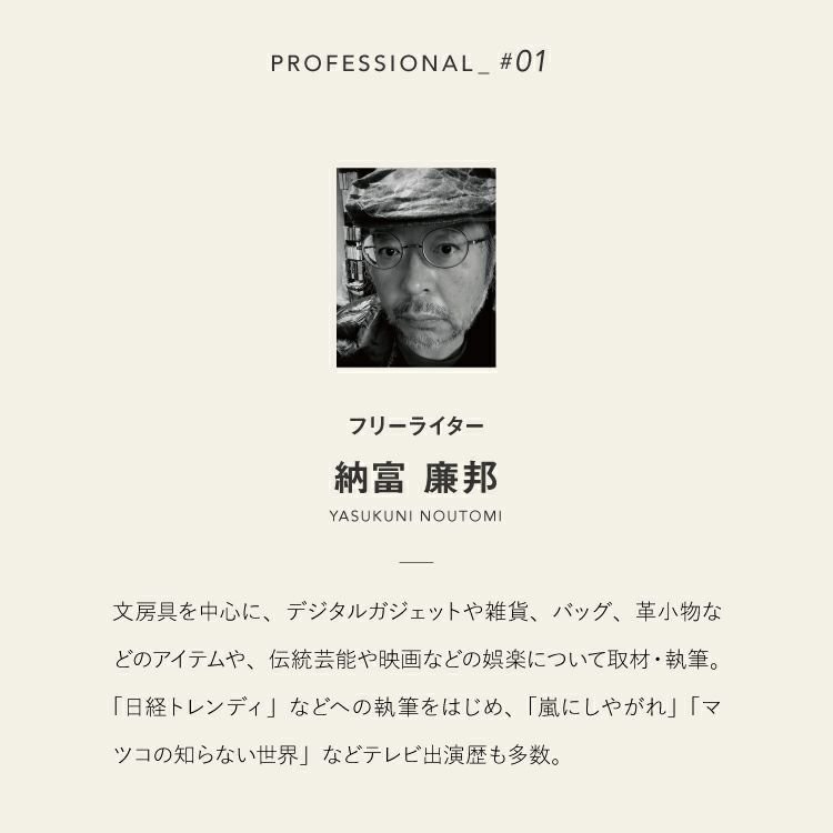 文房具を中心に、デジタルガジェットや雑貨、バッグ、革小物などのアイテムや、伝統芸能や映画などの娯楽について取材・執筆。「日経トレンディ」などへの執筆をはじめ、「嵐にしやがれ」「マツコの知らない世界」などテレビ出演歴も多数。