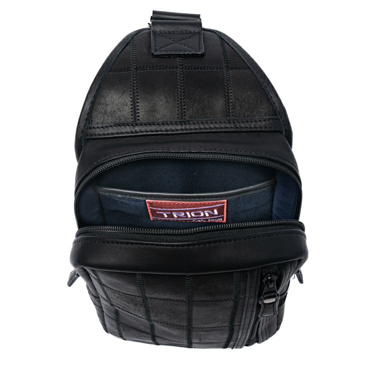 体に心地よくフィットする形状にこだわりました。開口部はダブルジッパーで開けやすい構造に。長財布や折りたたみ傘、500mlのペットボトルも収納できるサイズ感です。