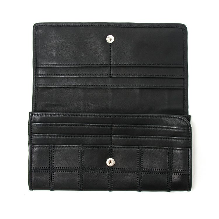 パネルの個性的なデザインと、経年変化による風合いの変化をお楽しみいただける本革長財布。
