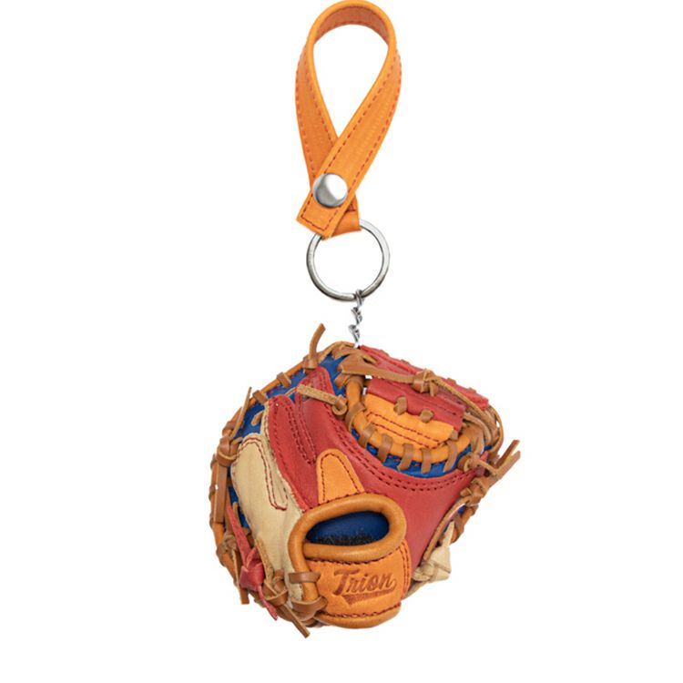 守備の要、キャッチャーが使うキャッチャーミット型キーチェーンをマルチカラーで作りました。その存在感は、バッグや鍵に添えれば、さりげなくも目を引くアクセントに。オンラインストアと直営店のみの限定モデルです。