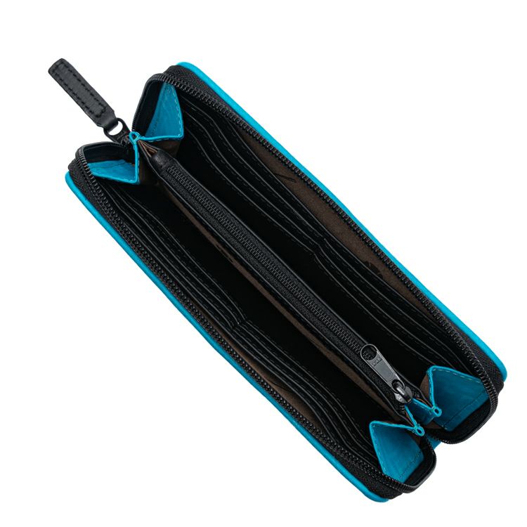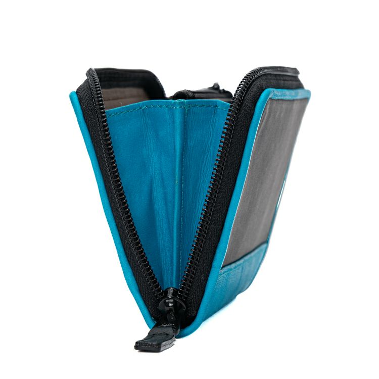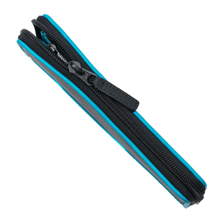 外装には、野球グローブにも使われるタフでしなやかなグラブレザーを使用。ブラック×ブルーのコントラストが目を引きながらも、派手すぎない品のある存在感で、使う人の個性を際立たせます。
