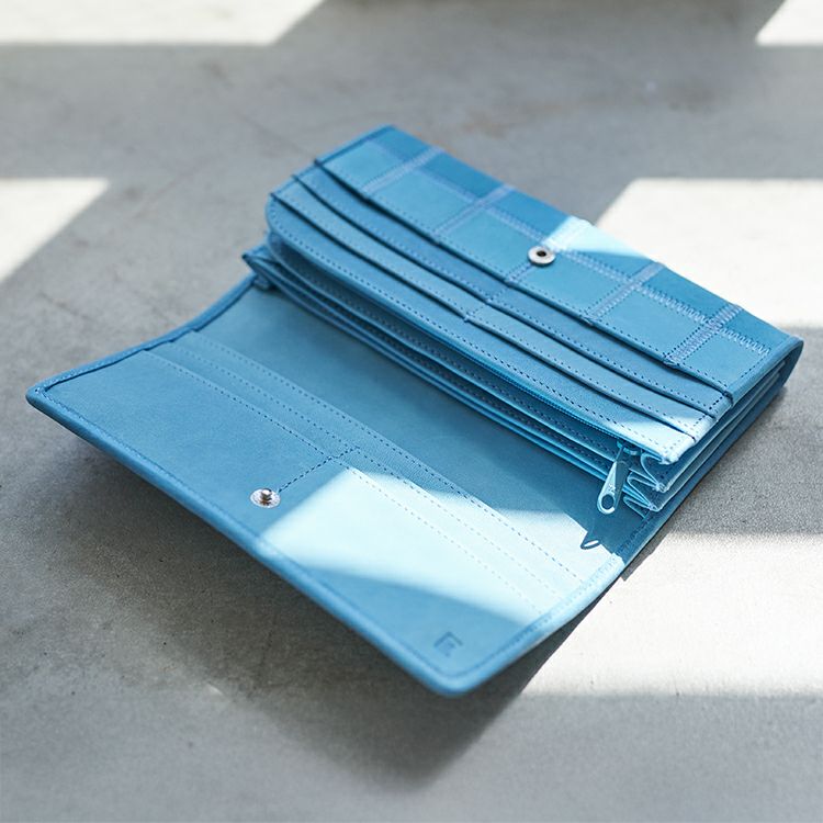 パネルの個性的なデザインと、経年変化による風合いの変化をお楽しみいただける本革長財布に、限定カラーが登場。これからの季節に爽やかな印象でお持ちいただける色合いです。