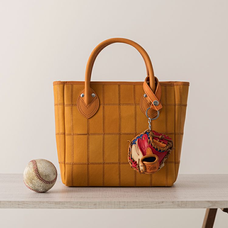 守備の要、キャッチャーが使うキャッチャーミット型キーチェーンをマルチカラーで作りました。その存在感は、バッグや鍵に添えれば、さりげなくも目を引くアクセントに。オンラインストアと直営店のみの限定モデルです。