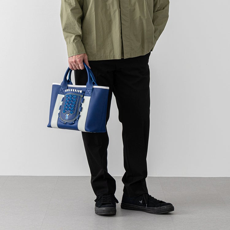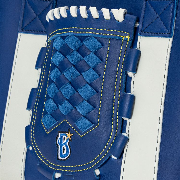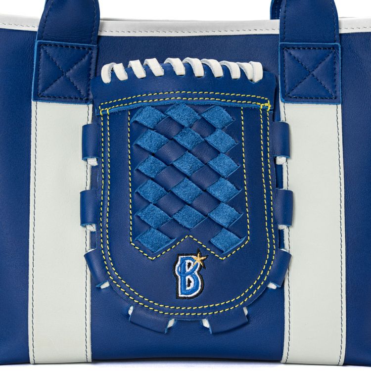 横浜DeNAベイスターズのチームカラーである青と白を基調に仕立てた、特別仕様のグローブミニトート。