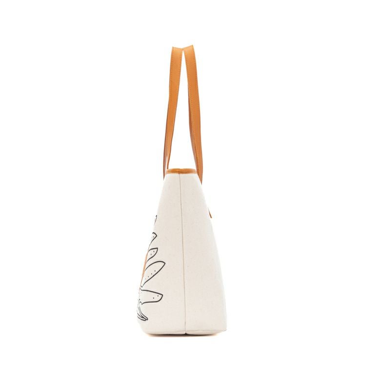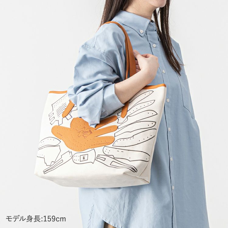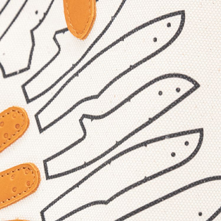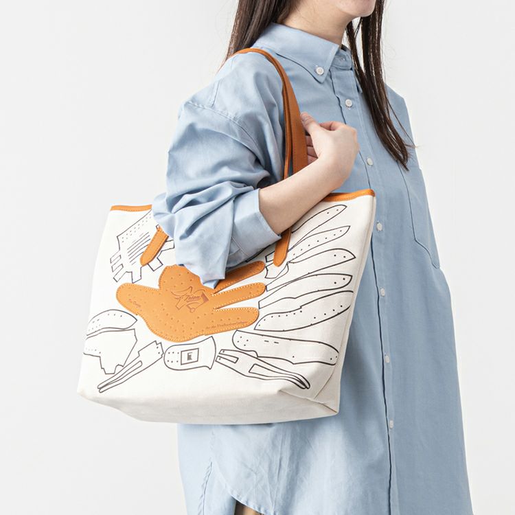 シンプルで無骨なキャンバストートに、野球グローブの「型紙」をモチーフにしたデザインを施しました。