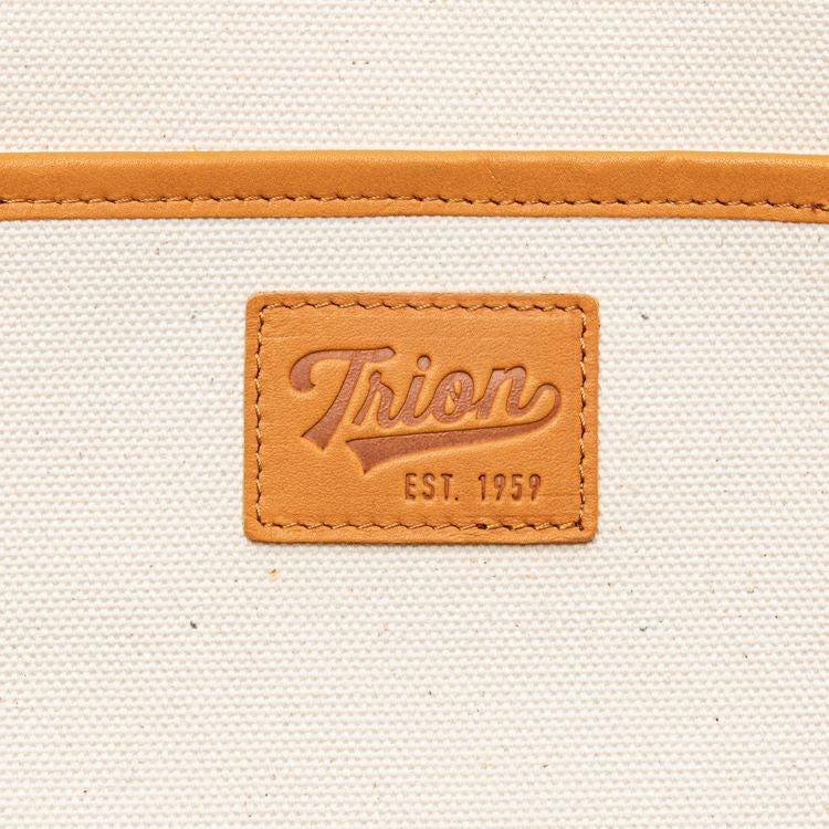 本体には厚手で丈夫なキャンバス素材を使用。ハンドルや開口部のパイピング、一部のディテールには、TRIONが誇るグラブレザーを贅沢に使用しています。