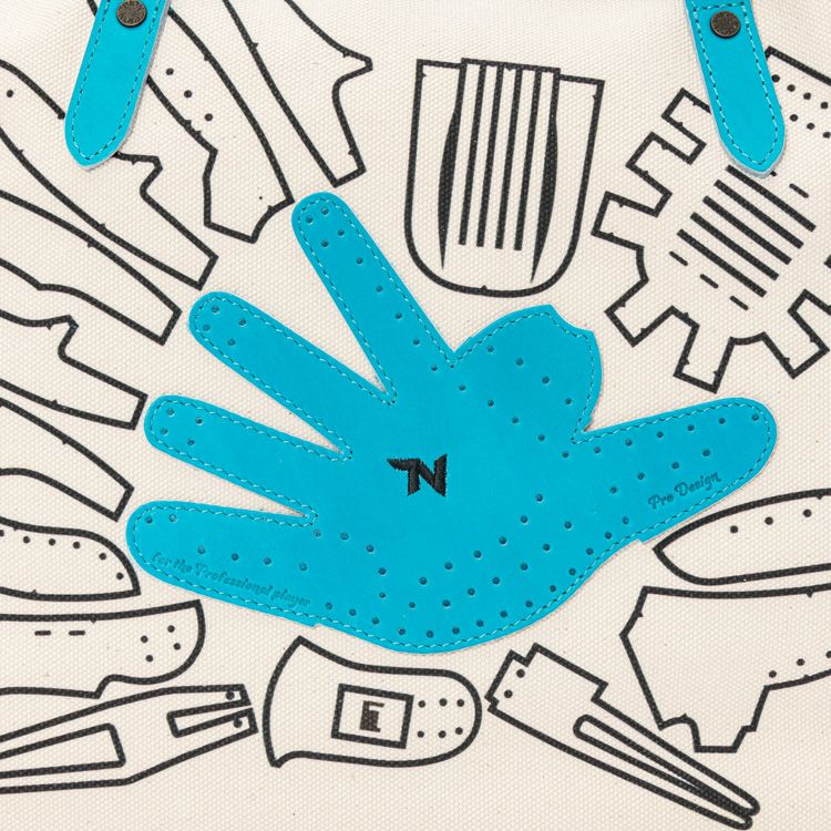 全面にあしらわれたグローブのパーツは、能見さんの利き手に合わせた左利き仕様の型紙を採用。
