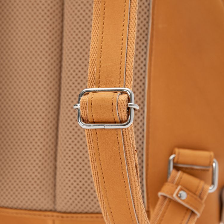 見た目の特徴は、何といってもグローブのような立体感。丸く包み込むようなフォルムになるよう、胴体部分にグローブづくりの「ハミダシ仕様」を採用し、グローブの構造美をバッグへと昇華しました。背負って歩くと左右に揺れる可愛さがあり、クッション性を高めた背胴部分が長時間の使用も快適にしてくれます。また、重さも約 560gで、背負った時の軽さにも驚くはず。
