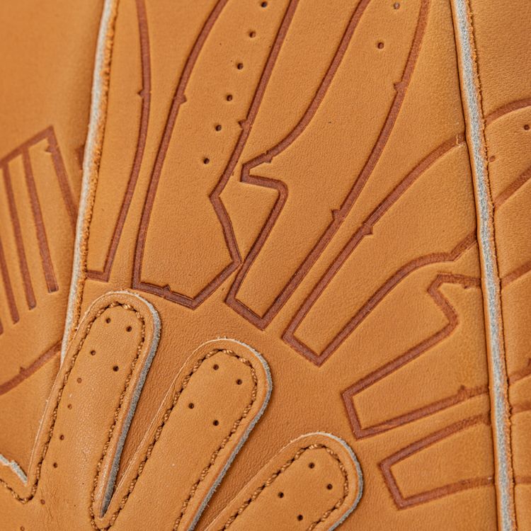 プロ野球選手も使用するグラブ製造から始まったTRIONのものづくり。その技術を最大限に活かし、日常に溶け込むバッグとして誕生したグローブミニリュック。グローブの型紙をモチーフにした型押しデザインで、刻印によるレザーの濃淡と、しなやかなグラブレザーの触り心地もお楽しみ頂けます。