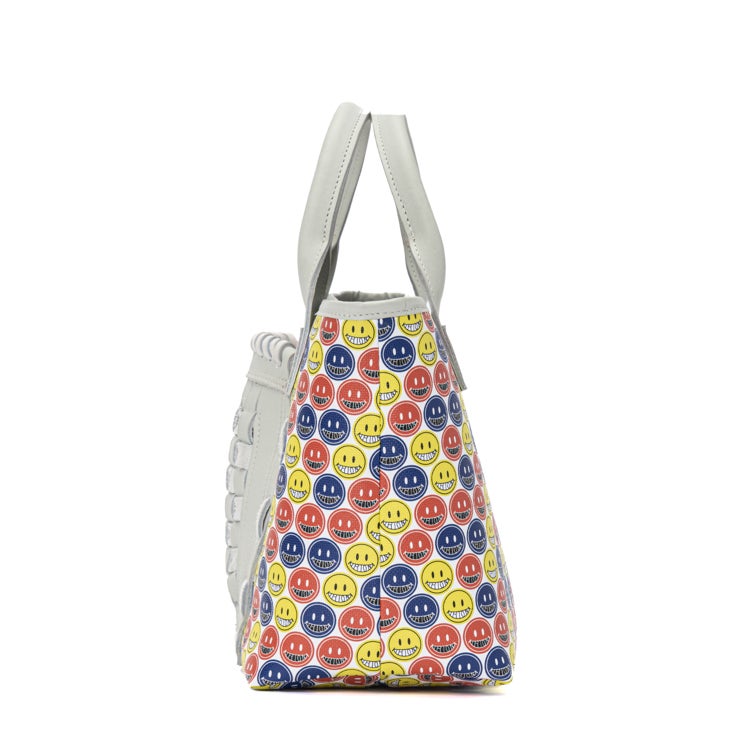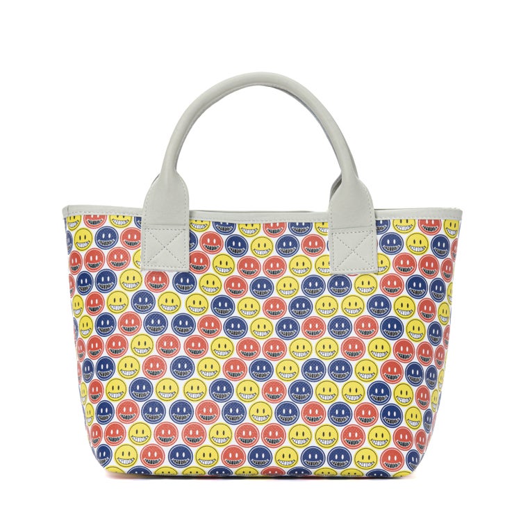 TRIONオリジナルのスマイルマークが全面に広がる、遊び心あふれるミニトート。キッズグローブリュックとおそろいで親子リンクコーデが楽しめるのはもちろん、これ一つで持っても存在感抜群の一点です。