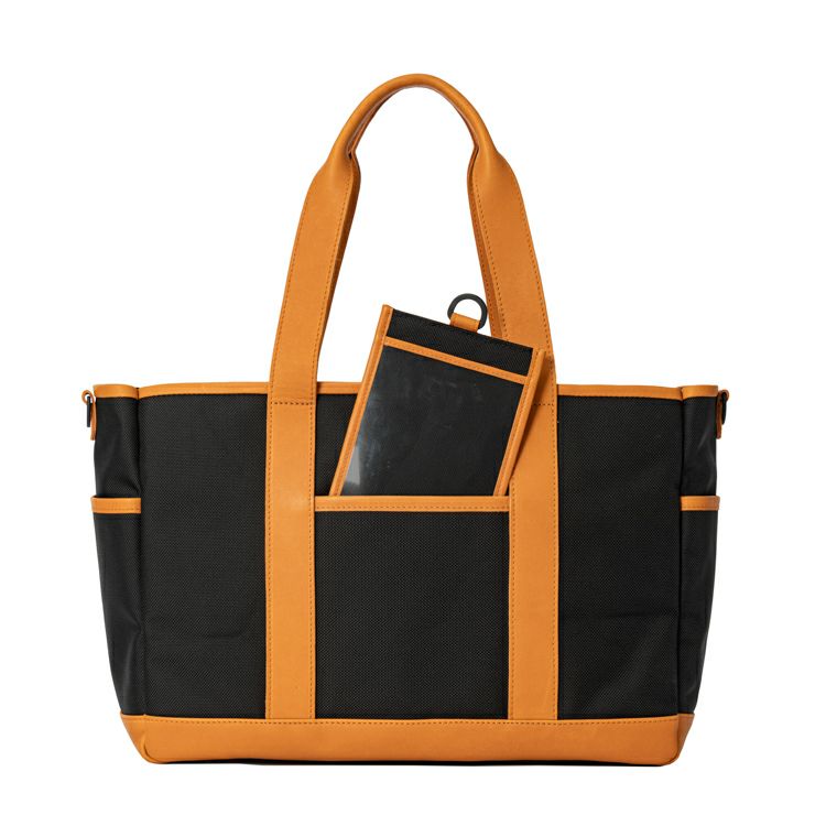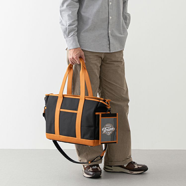 まずこだわったのが、仕事でも使える見た目。球場で足元に置いた時に足が当たっても汚れにくい、高強度で撥水加工を施したコーデュラ®のバリスティックナイロンを使用。アクセントやハンドルにはグラブレザーを使用し、カジュアルだけではない見た目に。シボ革を使用しシックにも持てるBlackと、グラブレザーらしいTanを使った2色展開です。