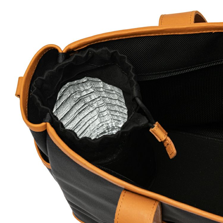 次のこだわり機能は、ペットボトルホルダー。市販の保冷バッグなどに使われている断熱シートを使用し、保冷材を入れて缶ビールなどを冷えた状態で、冬場には温かい飲み物を入れて持ち運べます。