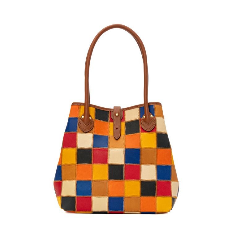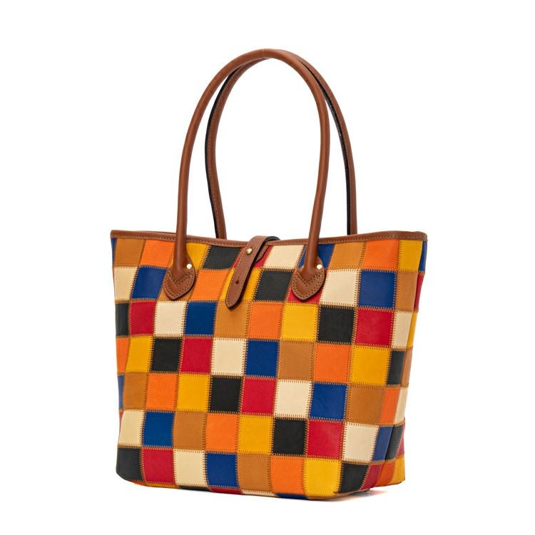 視線を惹く色のリズムと革のあたたかい手触り 【TRION】ミディアムトート マルチカラー