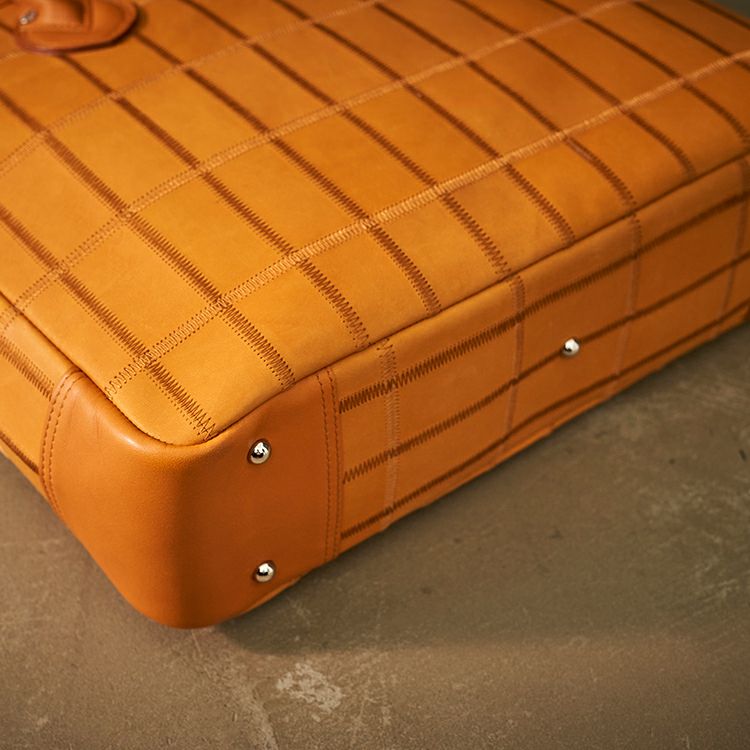 さらに、底びょうを新たに設けることで床置きの安定感をアップ。サイド下部には補強レザーを一枚重ね、型崩れを防ぎながら耐久性も向上させました。
