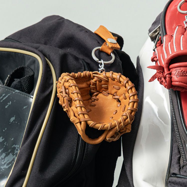 細部まで本物のグラブ感にこだわり、革から製造方法、パーツの作り込みまでグラブの製法をそのままに、サイズをキュッと小さくしたミニグローブ。捕球しやすさに特化した一塁手が使うファーストミット型のキーチェーンです。