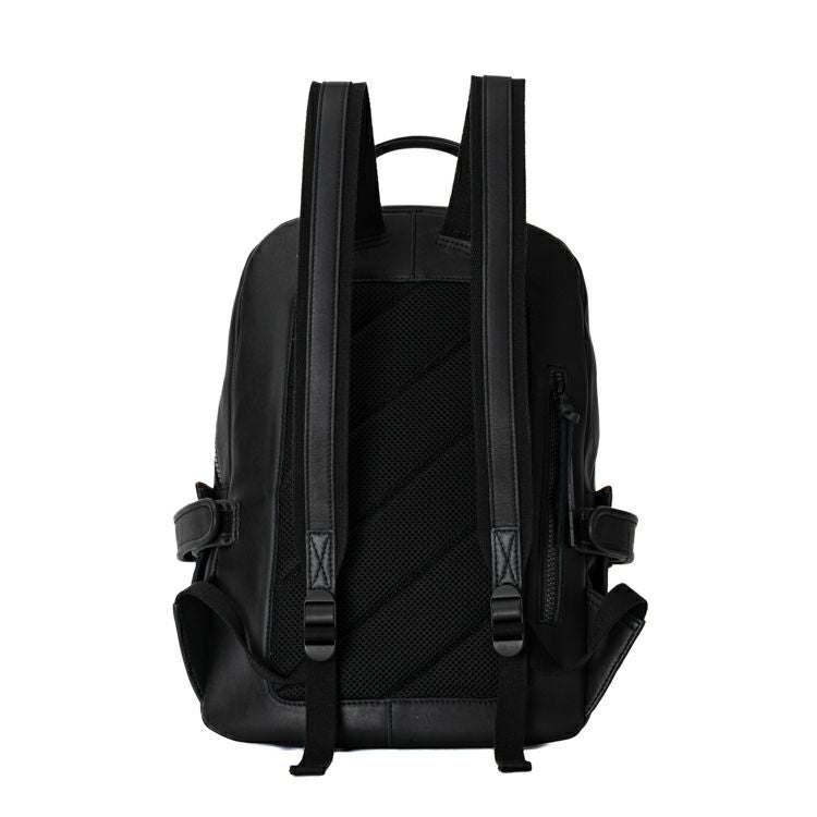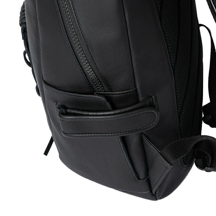 A4サイズはすっぽり収まるサイズ感。マチを最大約17cmと広めにとることで、旅行や出張など荷物の多いシーンでもお使いいただけます。また、オールブラックのシックな仕上がりで、カジュアルなビジネスシーンにもお使いいただけます。