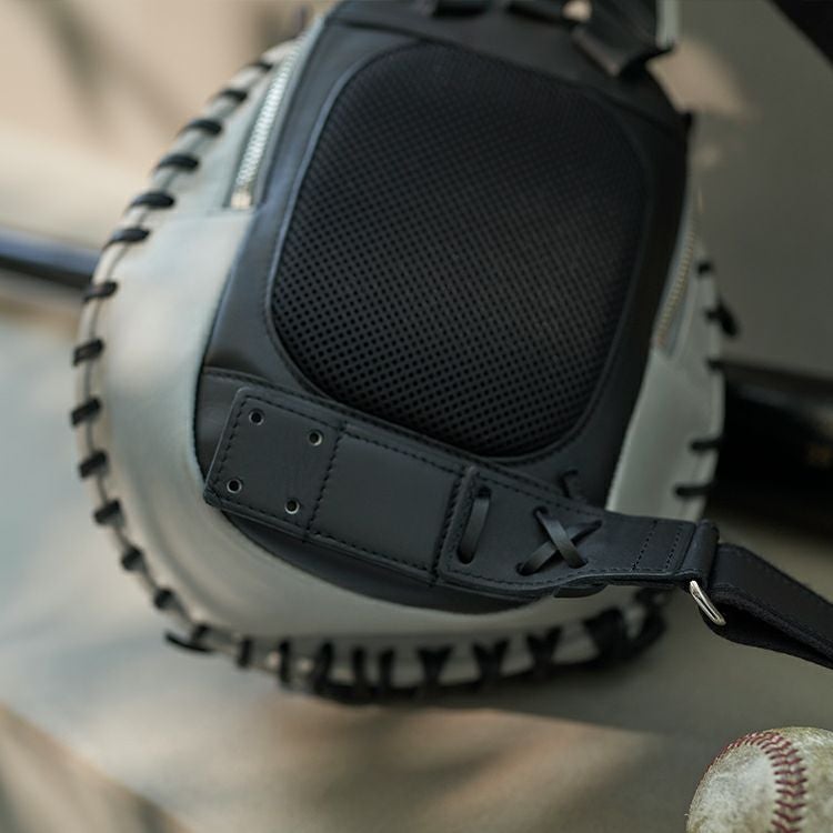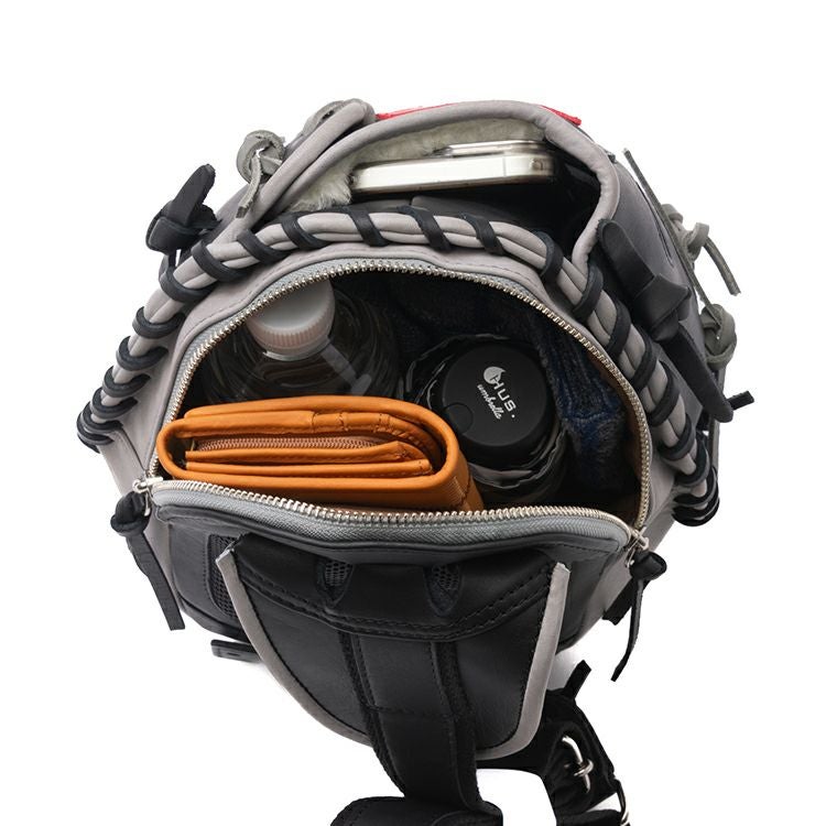 本物のキャッチャーミットを、そのままバッグに