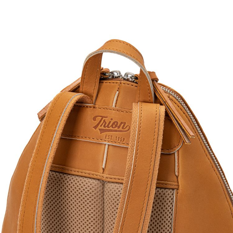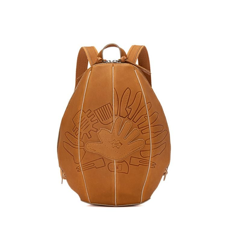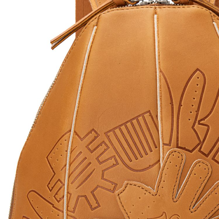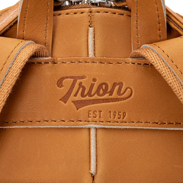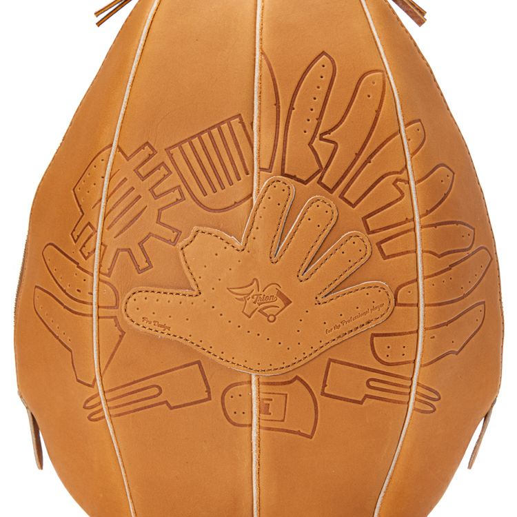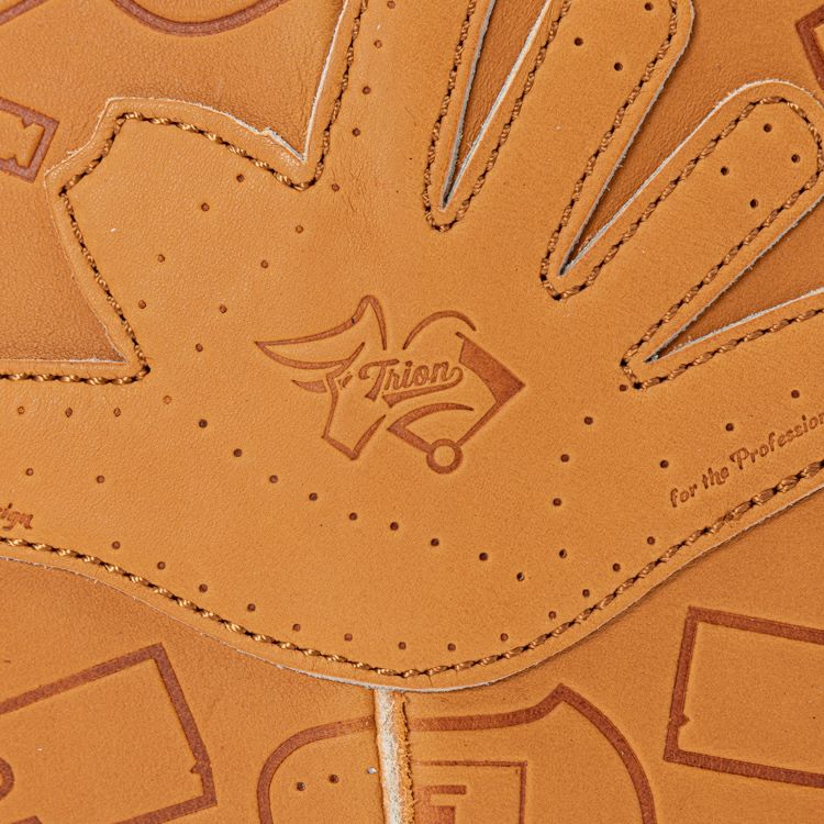 プロ野球選手も使用するグラブ製造から始まったTRIONのものづくり。その技術を最大限に活かし、日常に溶け込むバッグとして誕生したグローブミニリュック。グローブの型紙をモチーフにした型押しデザインで、刻印によるレザーの濃淡と、しなやかなグラブレザーの触り心地もお楽しみ頂けます。