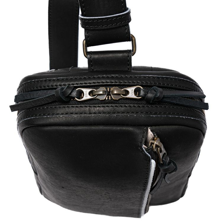 プロ野球選手の野球グローブにも使われる最高級グラブレザーを贅沢に使用し、そこにグラブ作りの技法を落とし込んだ、トライオンのクラフトマンシップが光るボディバッグ。時間をかけて革を育て、経年変化を楽しんで頂けるアイテムです。シックなBlackと、グラブらしい味わいのTanの2色展開です。