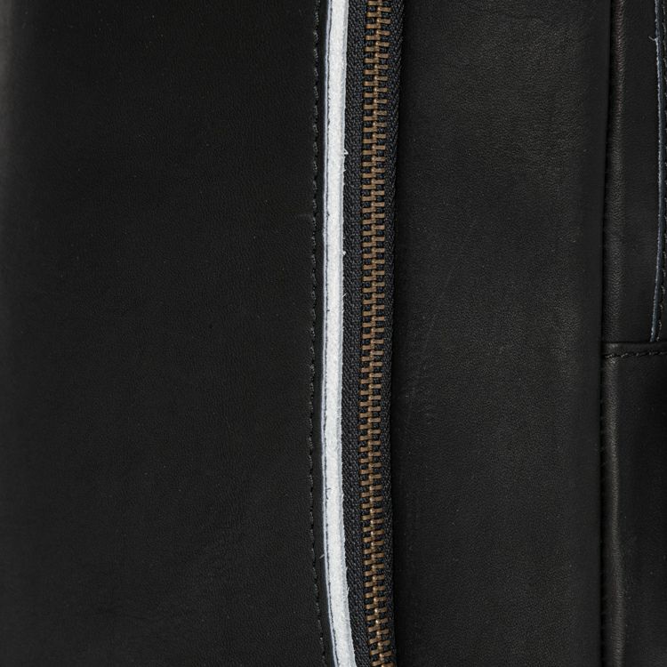 ジッパーの引き手に、野球グローブに使われるレース紐を採用しました。丈夫に加工した革の紐で、ジッパーとしての強度も確保。