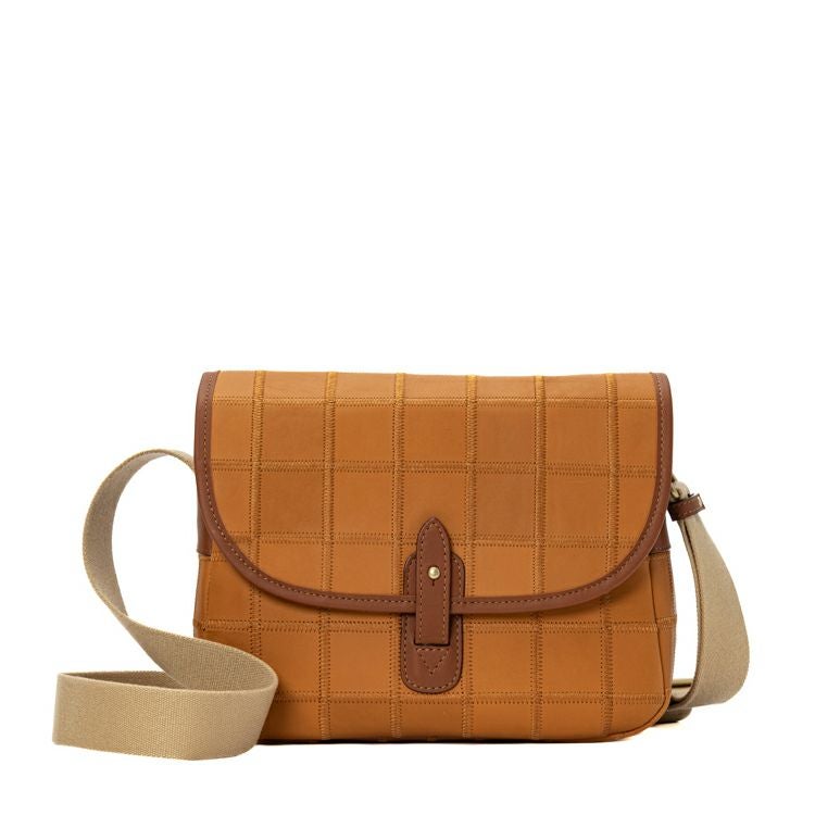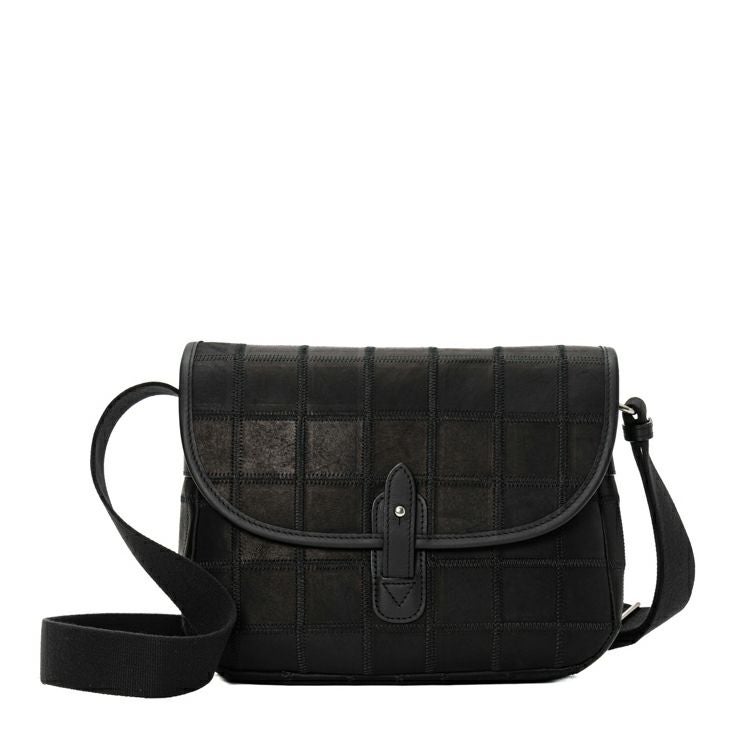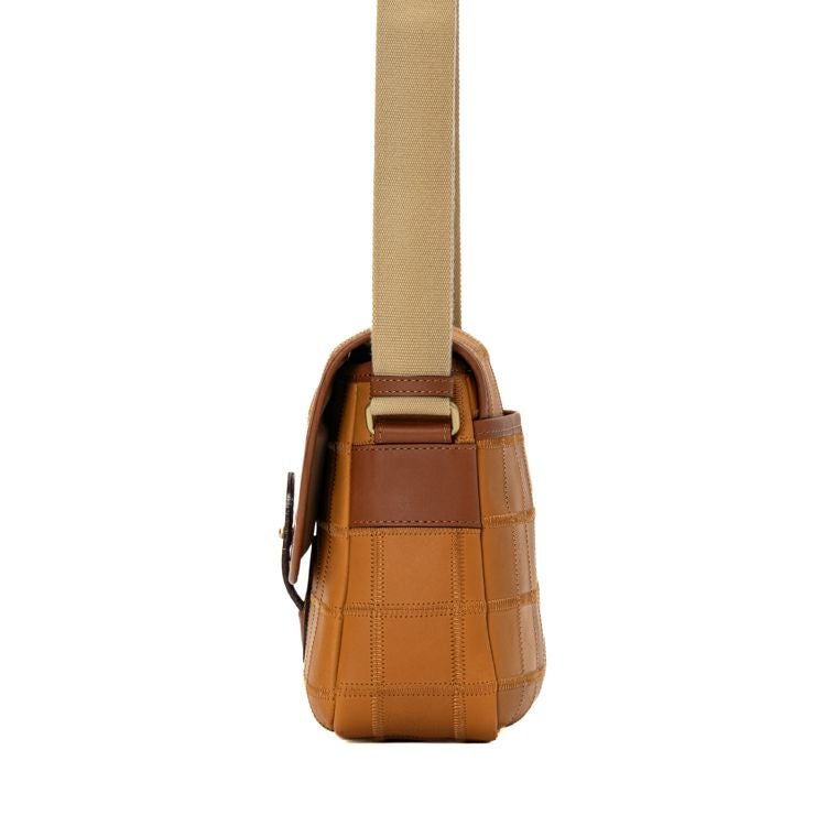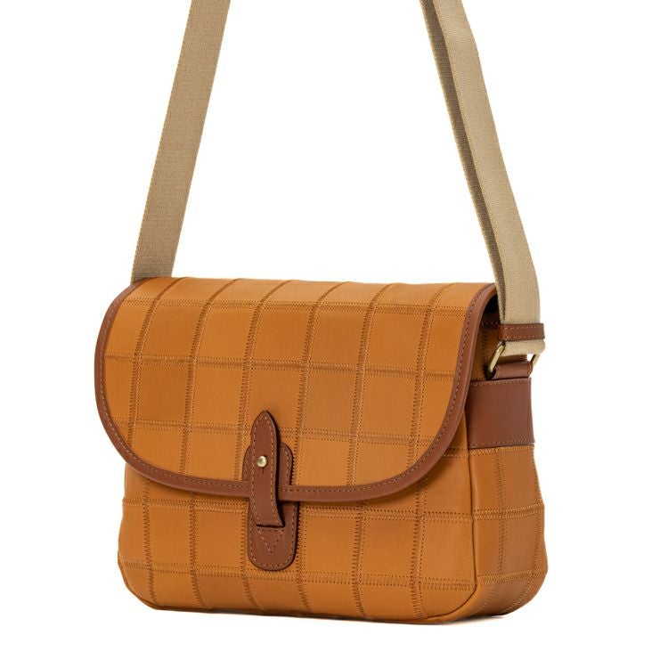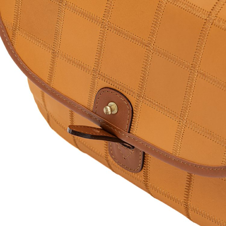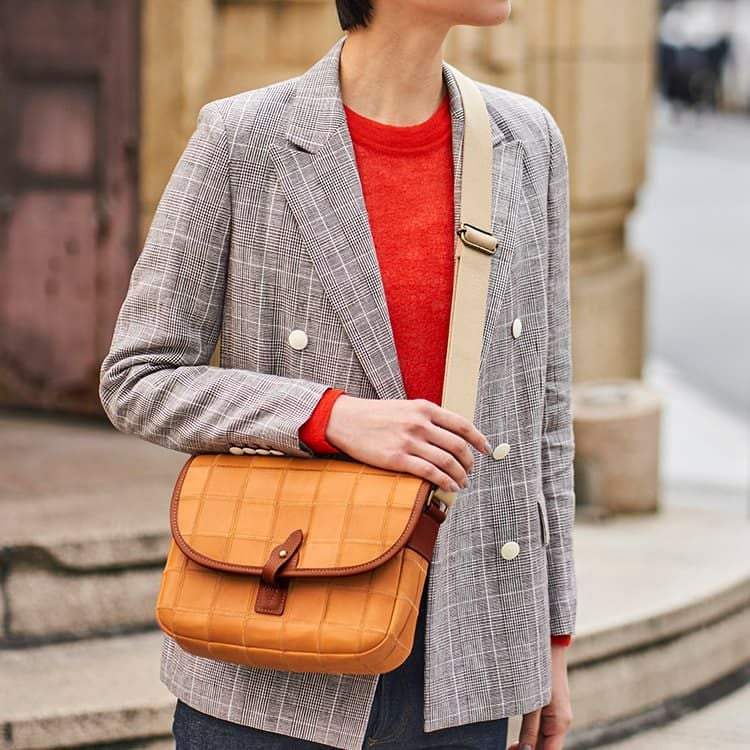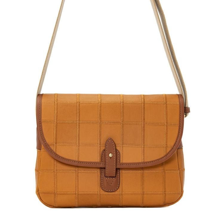 どこか懐かしさを感じるフラップ型のフォルムに、革の質感とニュアンスが重なる佇まい。
