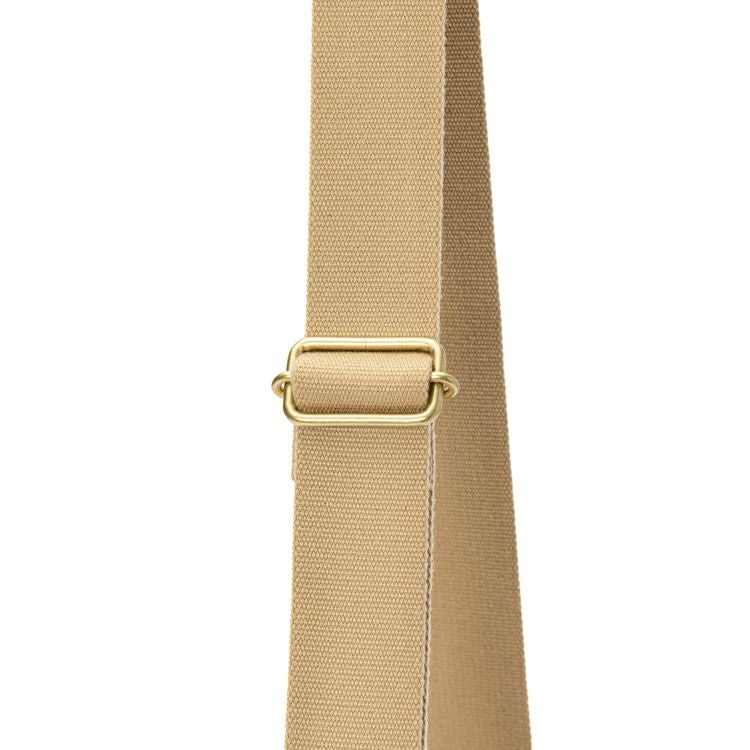 フラップタイプの開口部は、ギボシ金具でしっかり留められる仕様で、荷物の飛び出しを防ぎながらも、手元の動作をスマートに見せてくれます。