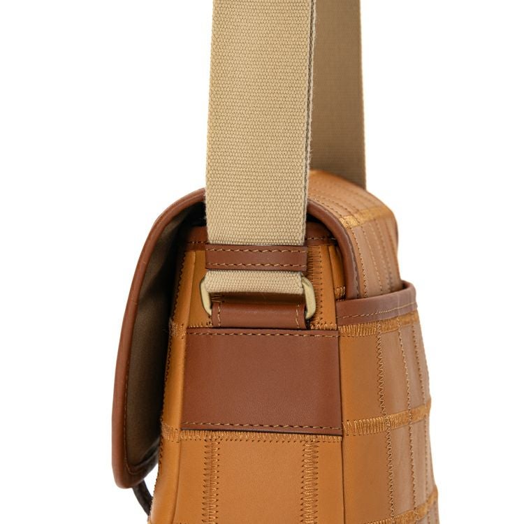 このバッグには、野球グローブの生産に使われる高品質なグラブレザーをアップサイクルして使用。一枚一枚異なる風合いの革を縫い合わせ、すべてが一点ものの特別な仕上がりに。見た目のユニークさはもちろん、その背景にはクラフトマンシップが息づいています。しなやかさと耐久性を兼ね備えた革は、日常をともに過ごすたびに、少しずつ深みが増していく特別な存在です。