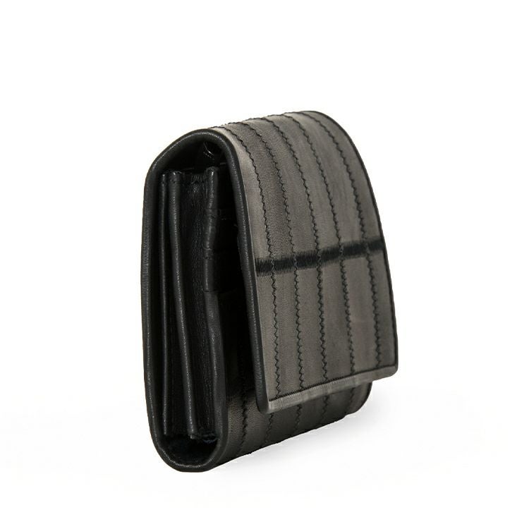 フラップタイプのスタンダードなかたちで、収納力はしっかり確保。お札入れは、広めの2つとその間に薄いフリーポケットを1つ配置し、紙幣の種類ごとに分けたり、レシートなどを仕分けることができます。