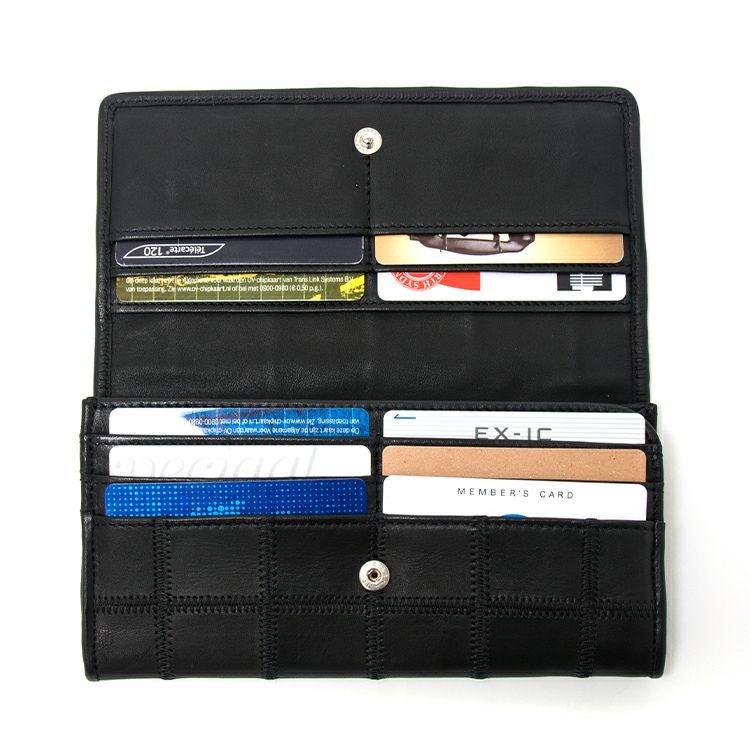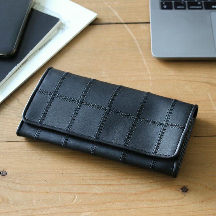 パネルの個性的なデザインと、経年変化による風合いの変化をお楽しみいただける本革長財布。