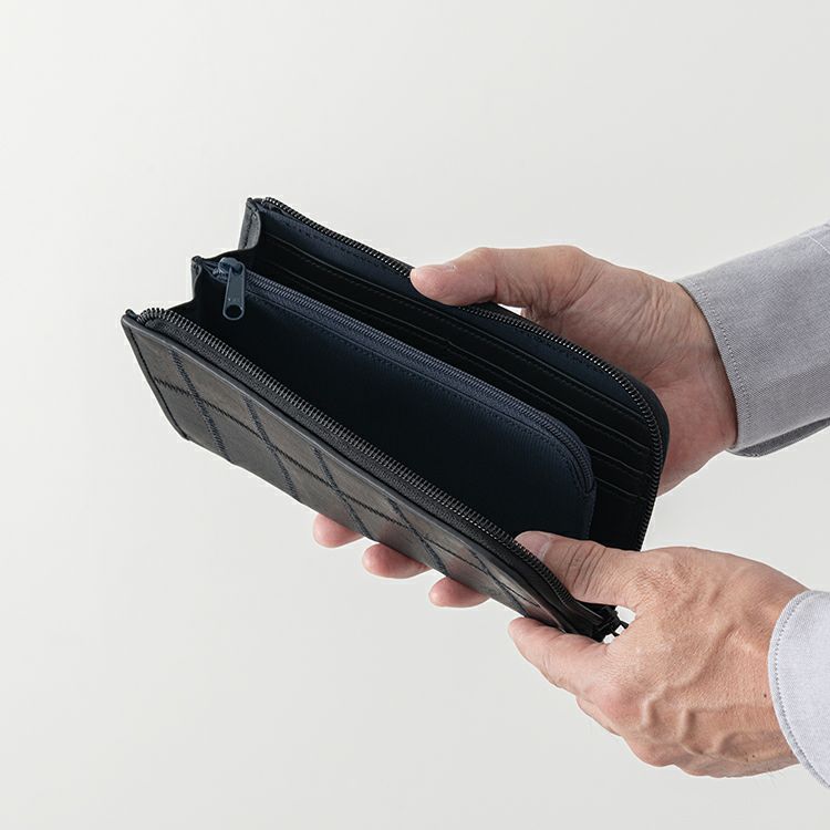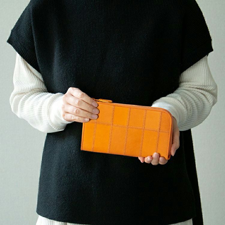 カードもたっぷり入る収納力がありながら、すっきり持てる軽さと薄さをバランスよく兼ね備えたL字ファスナー長財布。