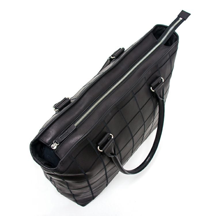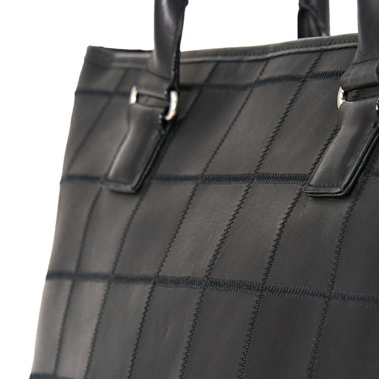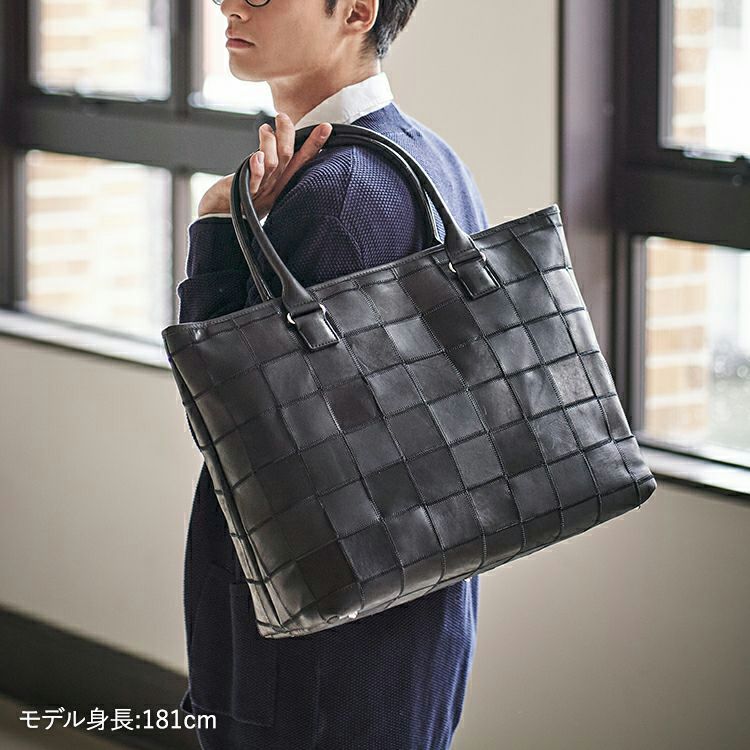 グラブレザーの丈夫さとタフさを持ち合わせ、普段使いできる大きめトートバッグ。パネルの形を正方形にしたことで、規則性のある落ち着いた印象に。