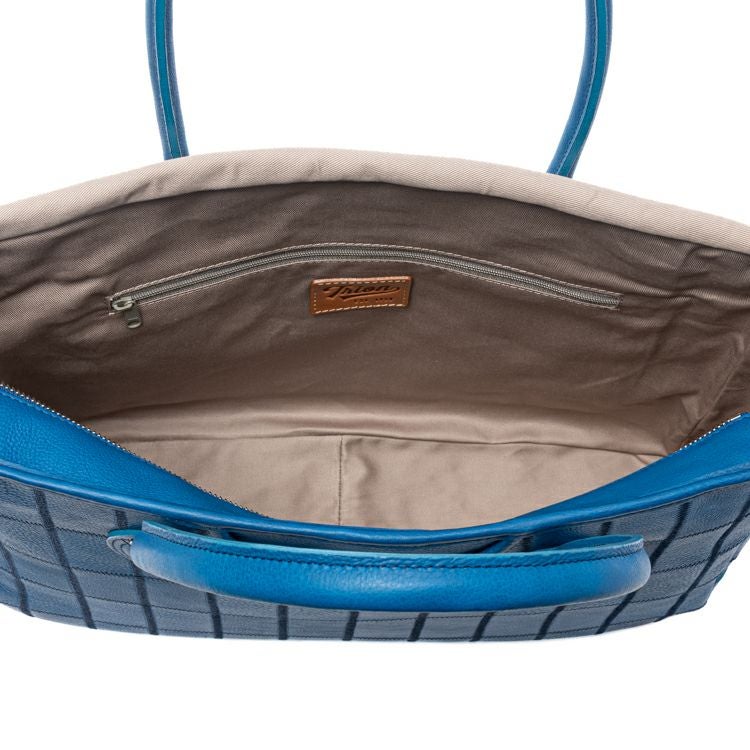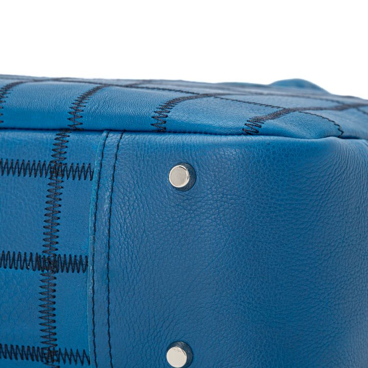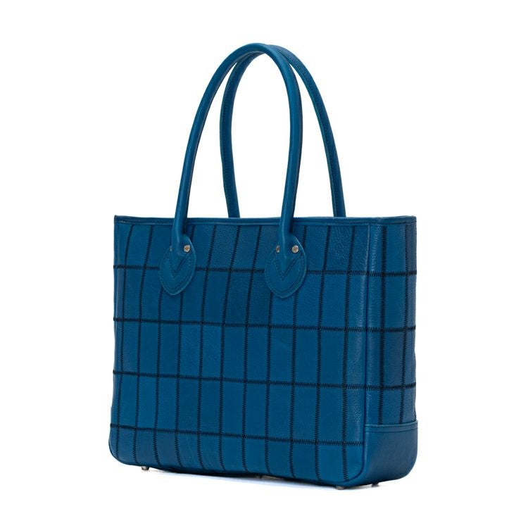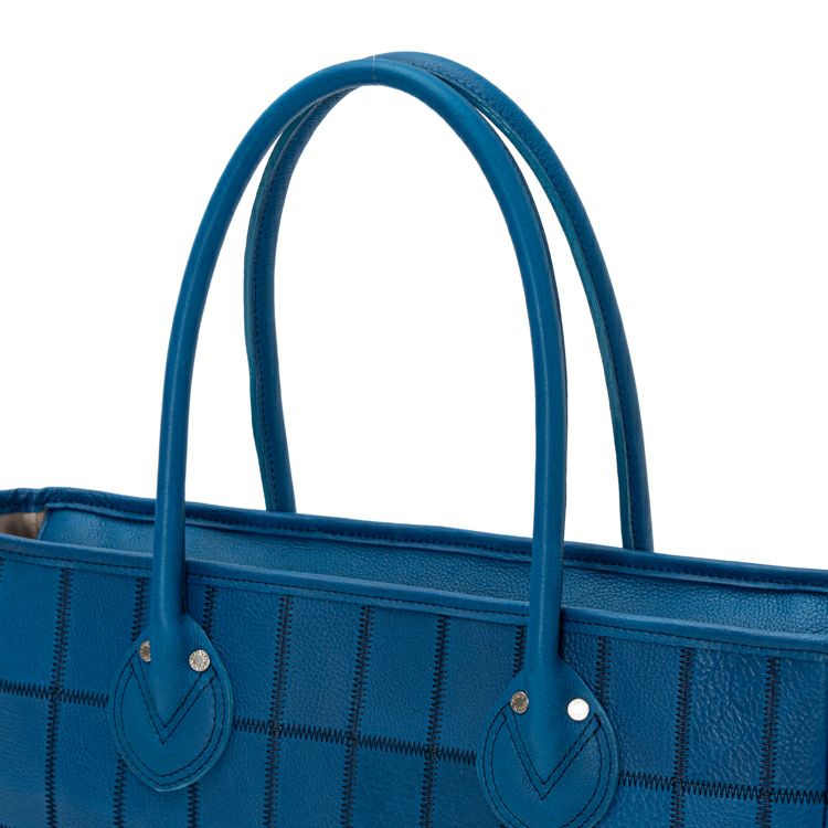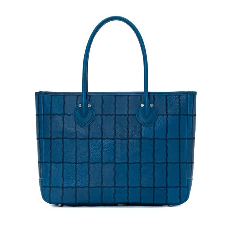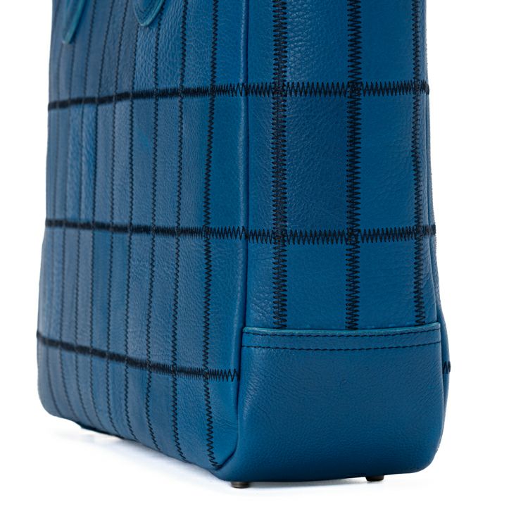 野球グラブ製造の過程で生まれた革を丁寧につなぎ合わせたPANELシリーズ。今回使用したのは、これまでにないコバルトブルーのシボ革。