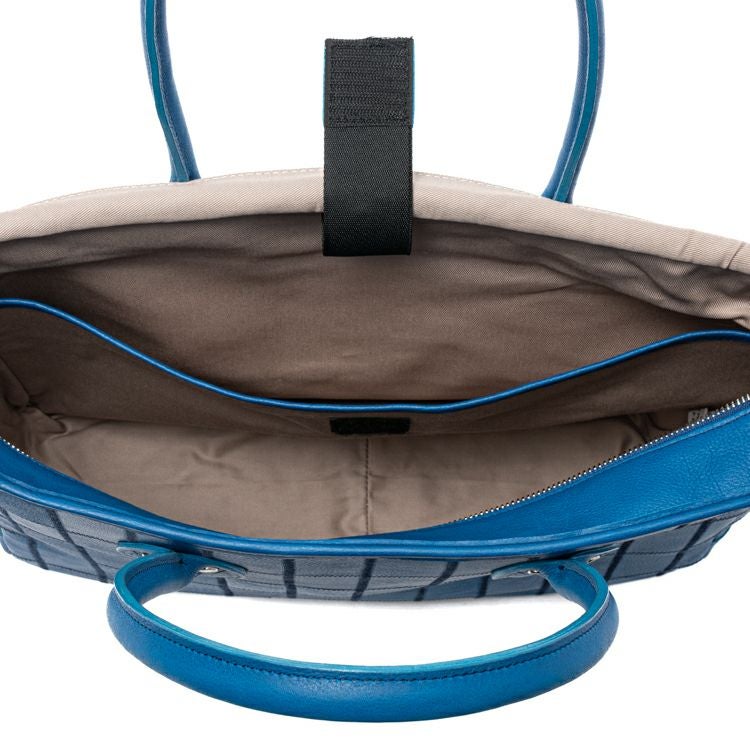 A4書類やポーチ、羽織ものに加え、13インチのノートPCも収まるサイズ設計。内部にはクッション材付きポケットを備え、ノートPCなど大切なデバイスをやさしく守ります。