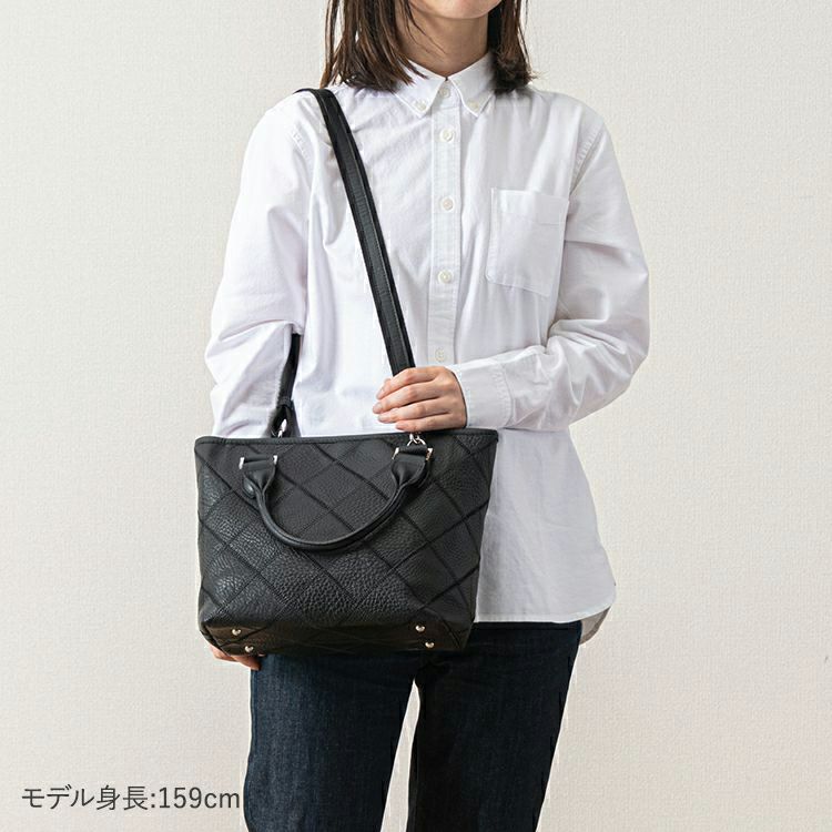 ボディ本体は肉厚で柔らかなタンブルレザーを使用。持つ人の手や身体に馴染みやすく、傷が入っても目立ちにくいのでオン・オフ気負わず毎日使えます。正方形パネルが斜めに並んだ配列できちんと感もある品の良い印象に。