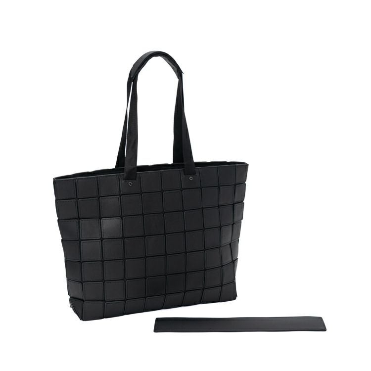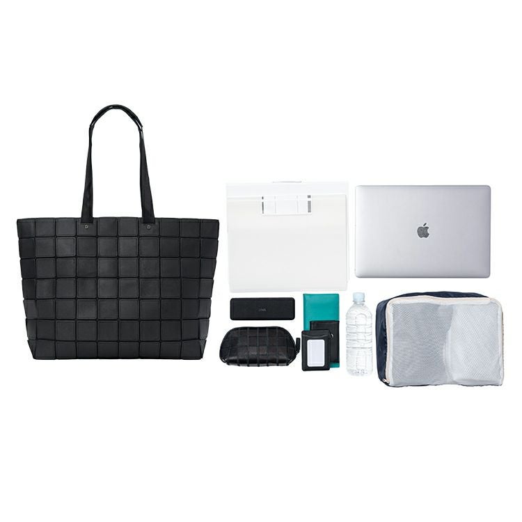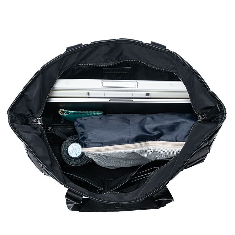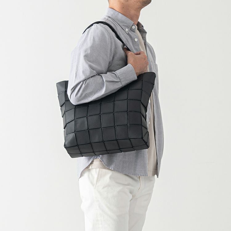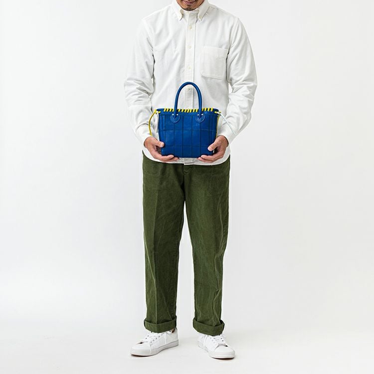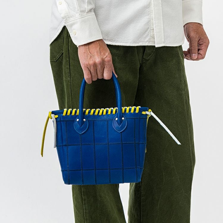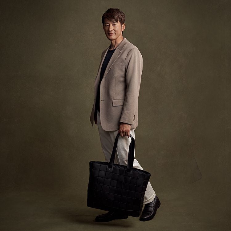 スーツからデニムまであらゆるスタイルに合わせやすいシルエット。良質なグラブレザーを繋ぎ合わせ新たな価値を生み出すアップサイクルトート。