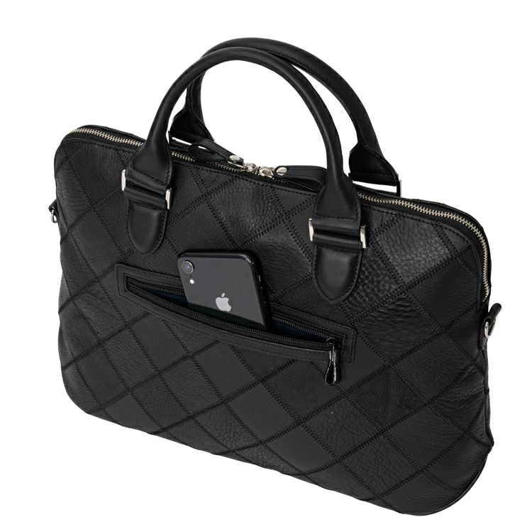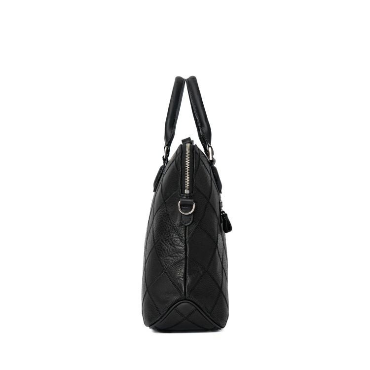 スーツからデニムまであらゆるスタイルに合わせやすいシルエット。良質なグラブレザーを繋ぎ合わせ新たな価値を生み出すアップサイクルトート。