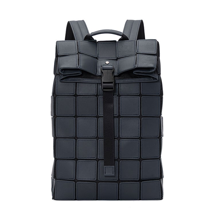 上質なレザーパーツと、ほどよい光沢を帯びた高級感のあるナイロン素材を組み合わせた、独自のコンビネーション。正方形に切り出した革の間から覗くナイロンが、視覚的にも軽やかで、フォルムも自在に変化。さらに、ナイロンに正方形のレザーパーツを3mmの間隔で1枚ずつ縫い付けるという、緻密で高度な技術を駆使。軽量でしなやかなだけでなく、使い込むほどに味わいを増す本革ならではの魅力も感じられます。2026春夏新色でネイビーが登場。