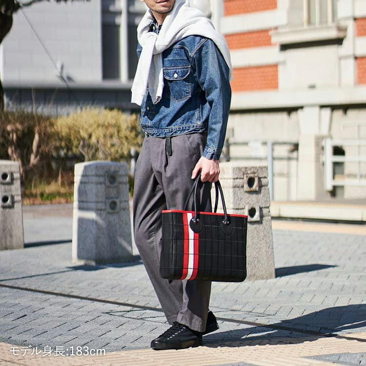 B4や16インチPCも収納可能な実用的なサイズ感。開口部はジッパー付きの天マチ仕様で、中身が見えず安心して持ち運べます。取り外し可能な底板が付属し、重い荷物を入れても形崩れを防ぎます。
